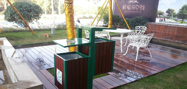 如此高標(biāo)準(zhǔn)的建筑群里,你們可以看到美天環(huán)保MT-013鋼木垃圾桶,本款垃圾桶經(jīng)過該方領(lǐng)導(dǎo)的多方考慮和比對(duì),決定為了與建筑群和環(huán)境更加融合,防腐木的顏色也特別精心調(diào)制,使用了瑪瑙紅,更加彰顯了該樓盤的高端與大氣。美天環(huán)保也深深的為樓盤領(lǐng)導(dǎo)細(xì)心周到的工作態(tài)度所感動(dòng)。