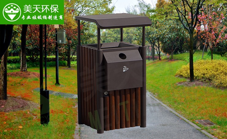 咨詢熱線:4008-787-781。美天環(huán)保這一款鋼木垃圾桶有單桶和雙桶兩個規(guī)格,四面皆設(shè)有投遞口,垃圾投遞起來方便。桶身較大,容納量大。桶身采用優(yōu)質(zhì)鍍鋅板和塑木,經(jīng)久耐用。