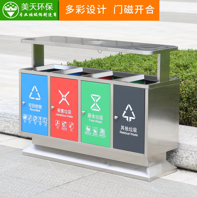 - 說(shuō)明: MT-X57選用優(yōu)質(zhì)不銹鋼材質(zhì),通過(guò)折彎,焊接,打磨等工藝制作而成,多分類,滿足國(guó)家提倡垃圾分類的標(biāo)準(zhǔn)。